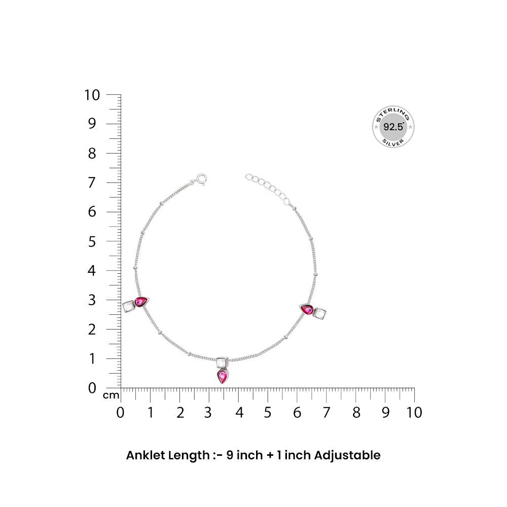 Silver 92.5 Anklet With Square And Drop Stones