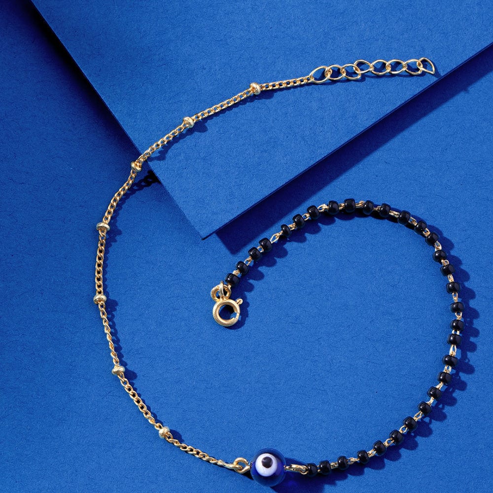 Elevate your style with our exquisite Nazariya gold-plated anklet adorned with the protective symbolism of the evil eye. Perfect for adding a touch of elegance and warding off negativity, whether for personal wear or as a meaningful gift