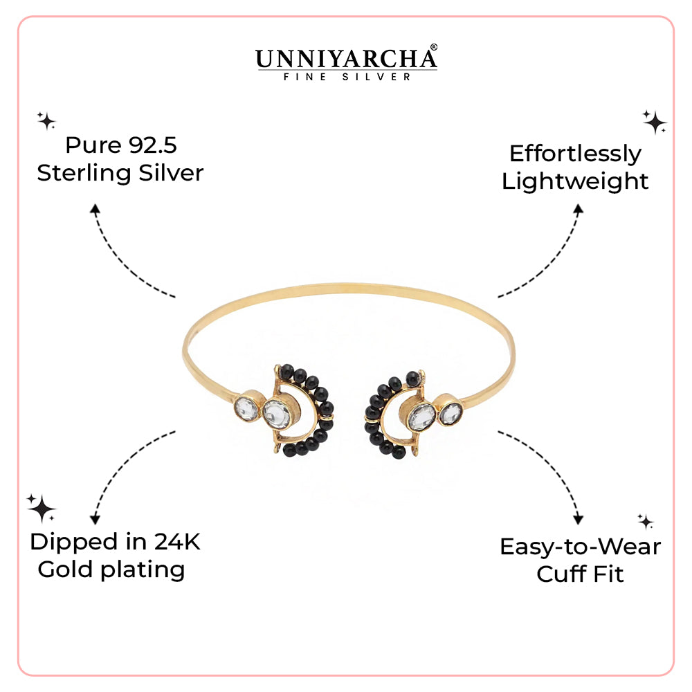 With lines of Black Beads interspersed with a gold cuff, this loose Kada is your everyday accessory. Handcrafted in 92.5 pure silver.