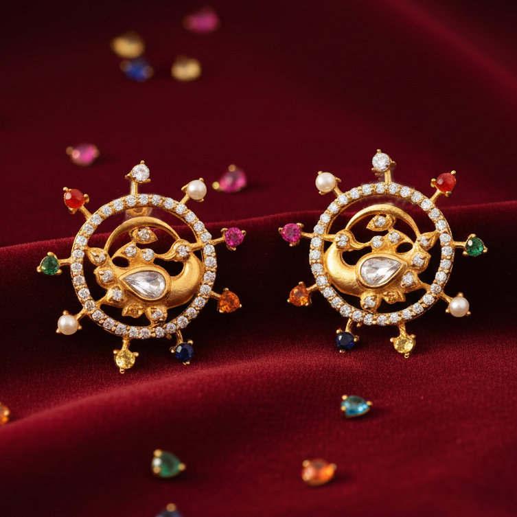 We are in love with this lightweight Navrattan Studs with swan motif. Perfect for a casual outing or a festive setup.