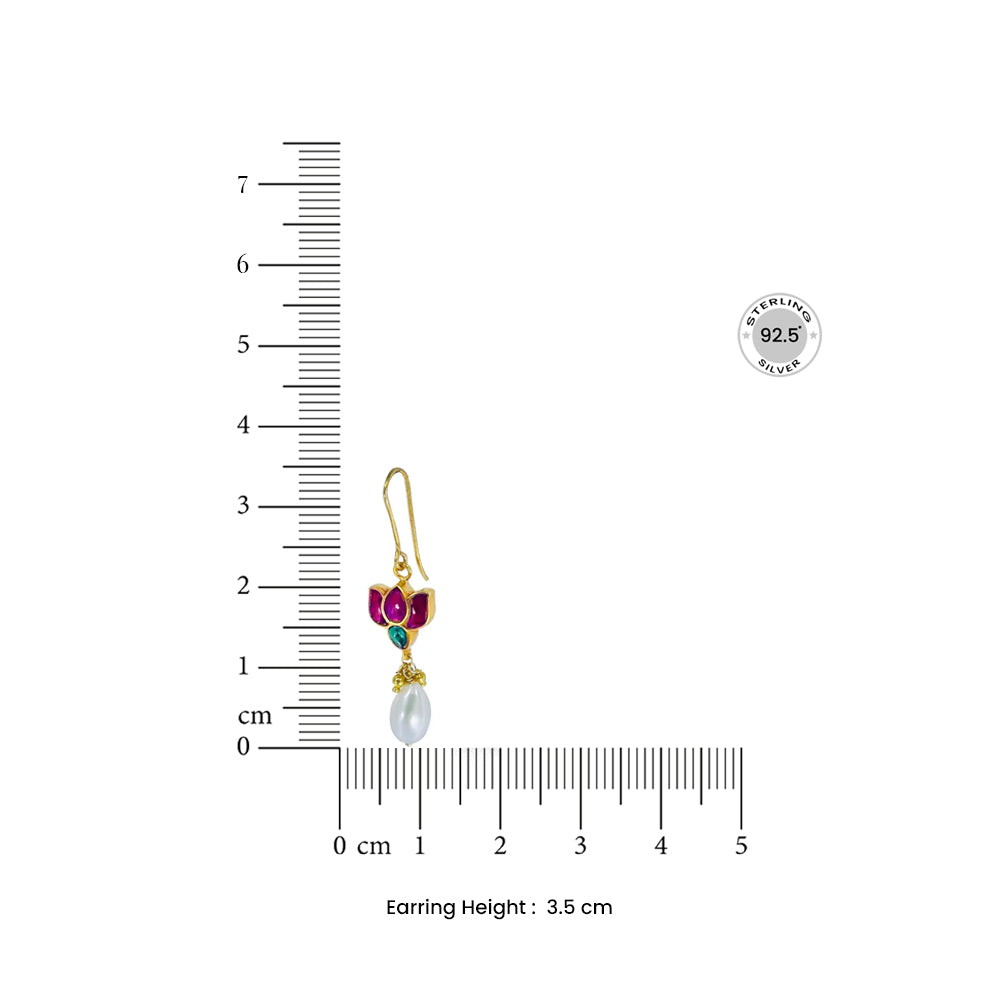 This earring is composed of 92.5 silver. The red semiprecious stones shine brightly against the silver and the pearls add a touch of elegance. Perfect for daily dose of colour.