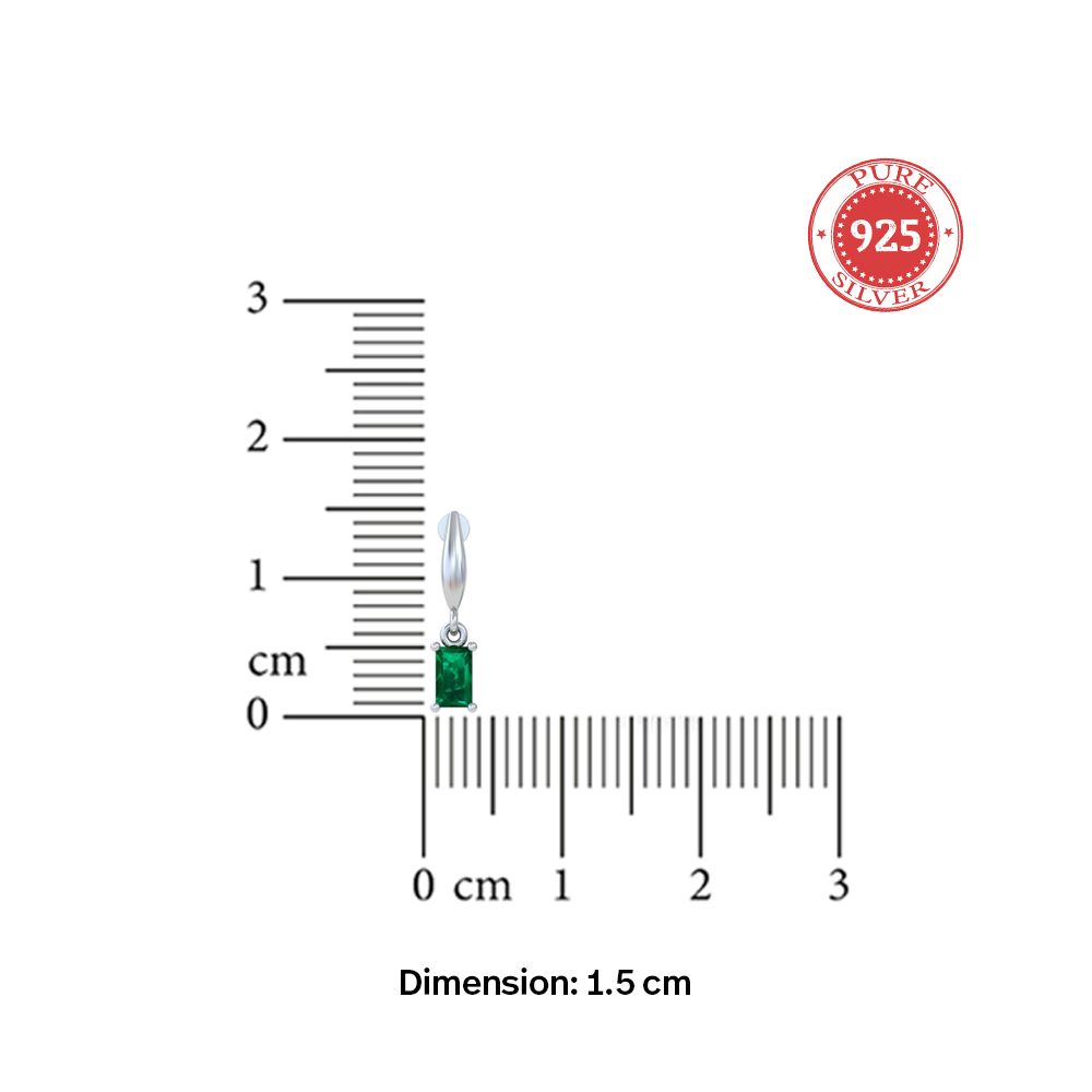 Sleek silver drop earrings featuring vibrant emerald-cut green gemstones. Clean lines and a modern silhouette give these earrings a refined elegance, perfect for adding a touch of color to both day and evening looks.