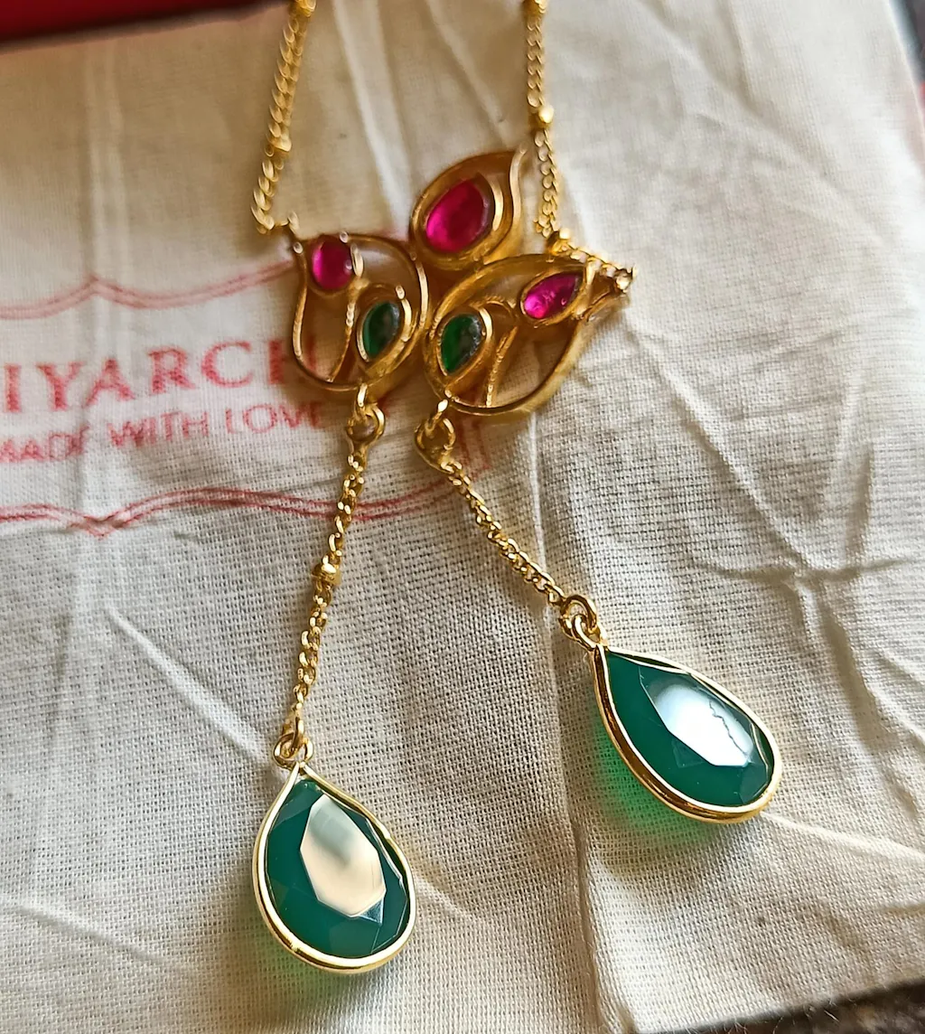 Silver 92.5 Aam Ras Pink & Green Necklace