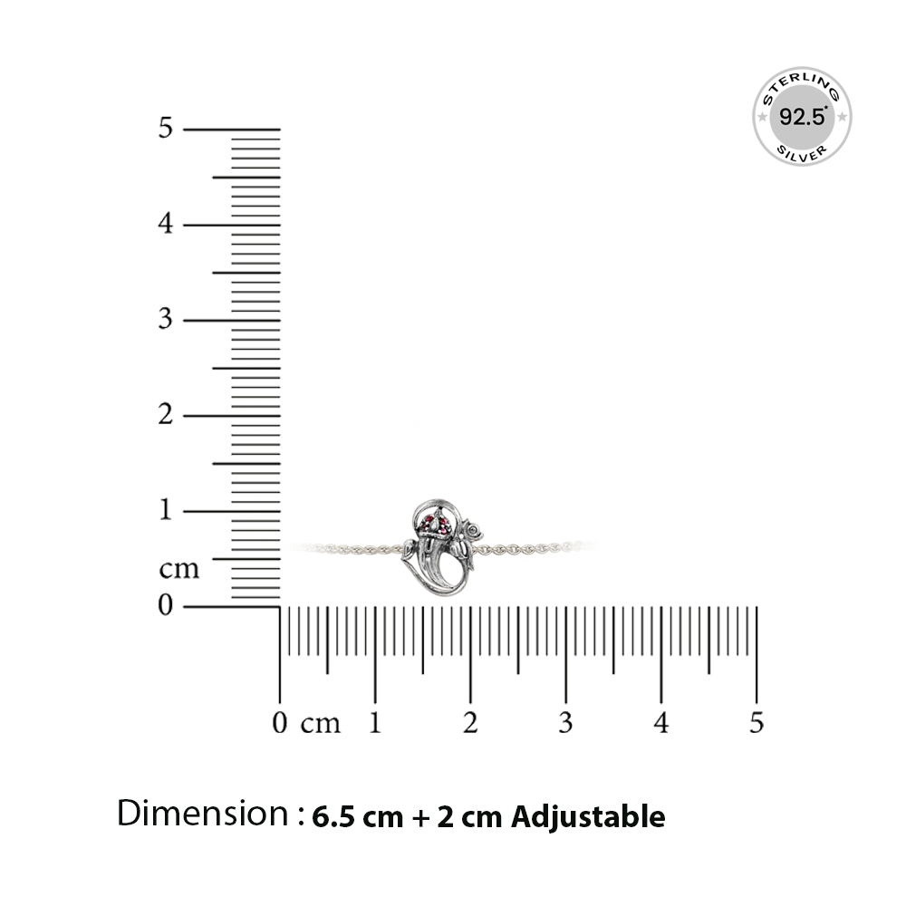 Embrace spiritual elegance with this exquisitely crafted 925 Sterling Silver Om Bracelet. Featuring a graceful Om symbol delicately entwined with a blooming floral motif, this piece symbolizes peace, beauty, and spiritual strength. Adorned with sparkling ruby pink cubic zirconia stones for a touch of vibrant color, the bracelet adds both meaning and charm to your everyday look.