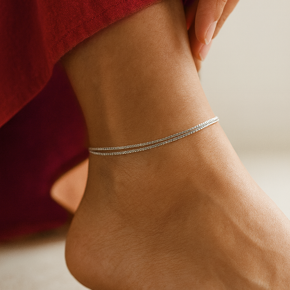 Grace your steps with the understated charm of the Silva Sleek Anklet, crafted in premium 925 Sterling Silver. Featuring a minimalist and smooth snake chain design, this anklet is a timeless expression of elegance and sophistication. Its clean silhouette and polished finish make it a versatile accessory—perfect for everyday wear or subtle festive flair.