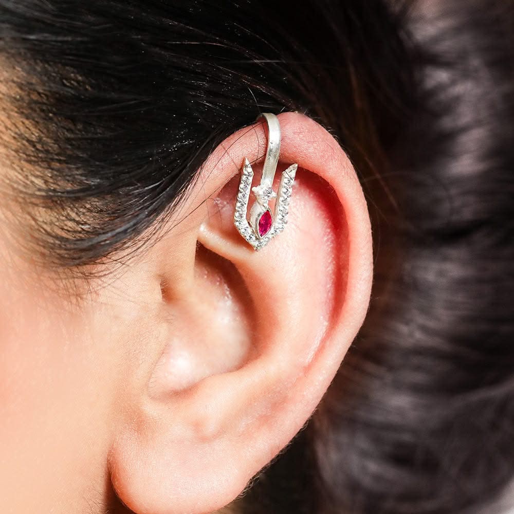 Ear clip designs for girls that dont have piercing..cos your comfort is of importance to us. We know you loved our bugadi designs but since many of you didnt have ear piercing on the ear top, we have created the ear clips for you. Handcrafted in pure 92.5 silver.