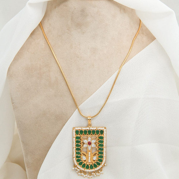 - This long necklace is a statement design. But we think the best part of this design is its completely unique look and that it can be styled with a both traditional look as well as contemporary outfit for a fusion vibe.