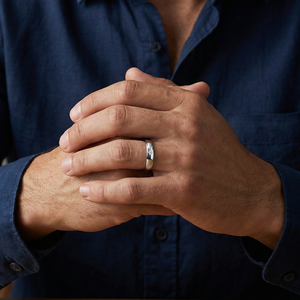 Square-cut green gemstone ring in 92.5 sterling silver with bold, modern design