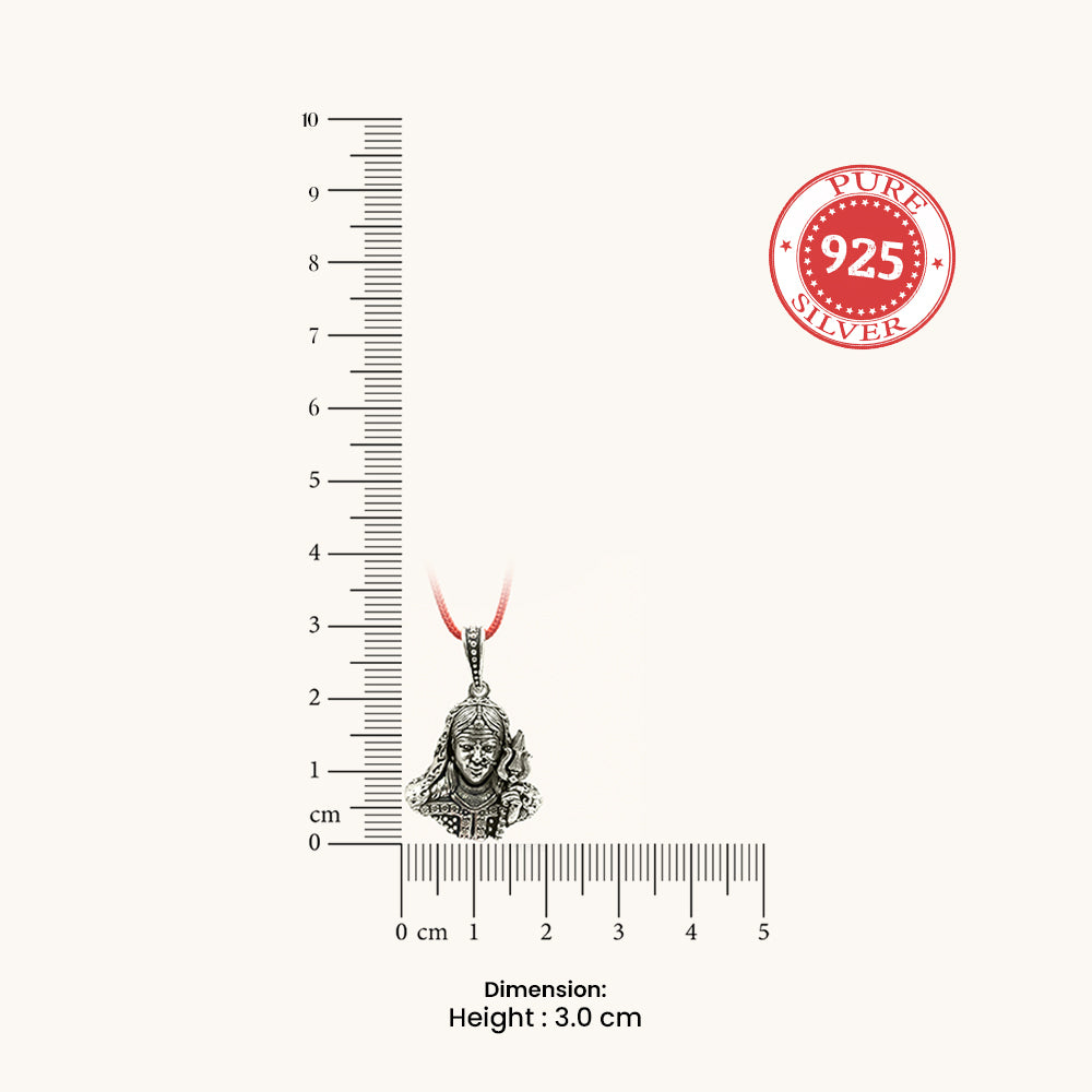 Invoke grace, courage, and protection with this intricately crafted silver pendant depicting a powerful Hindu goddess holding a trident. Designed with fine antique detailing, expressive facial features, and traditional motifs, this piece radiates spiritual strength and timeless beauty. The oxidised silver finish enhances every detail, making it a striking yet soulful accessory.