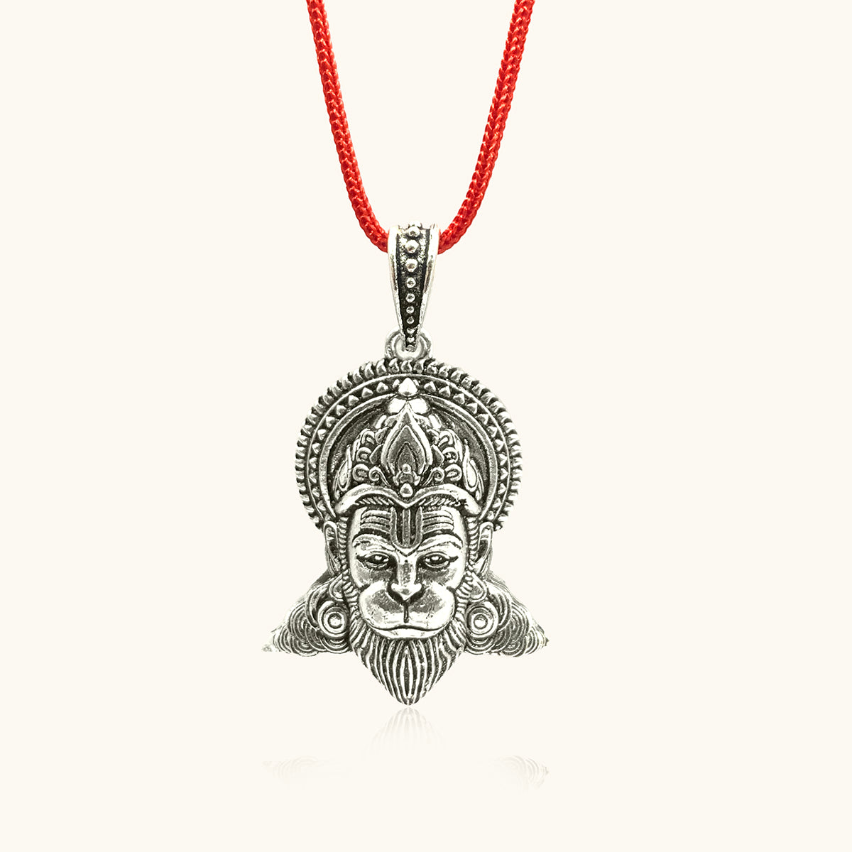 Perfect for daily wear or sacred occasions, the pendant sits gracefully on a red thread or silver chain, making it both meaningful and versatile. A timeless piece for those who seek inner strength, protection from negativity, and a constant reminder of devotion.