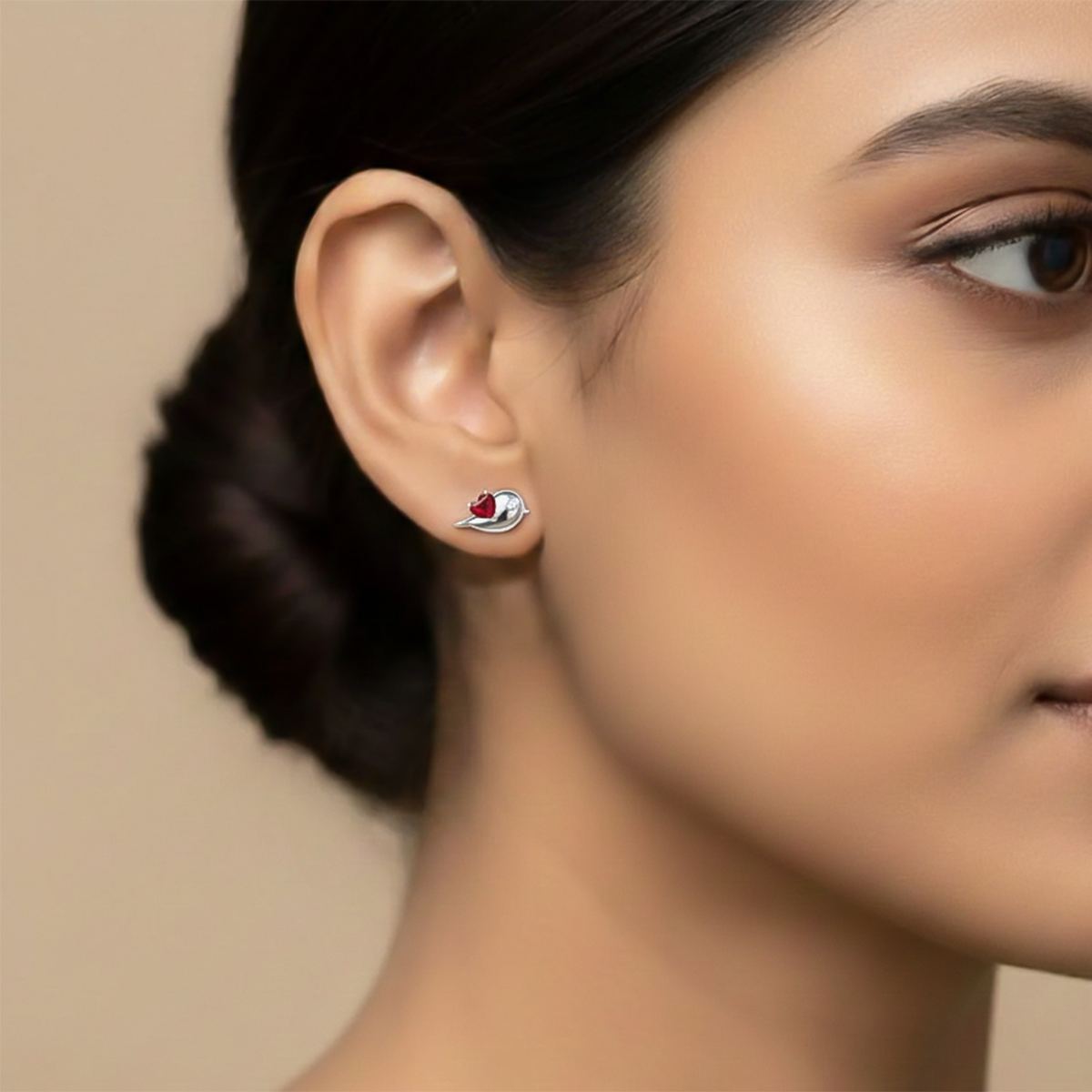 A pair of minimalist stud earrings crafted in plain 925 sterling silver, featuring two delicate lovebirds in a mirrored design. Each lovebird is softly sculpted with smooth curves and fine detail, symbolizing eternal companionship.