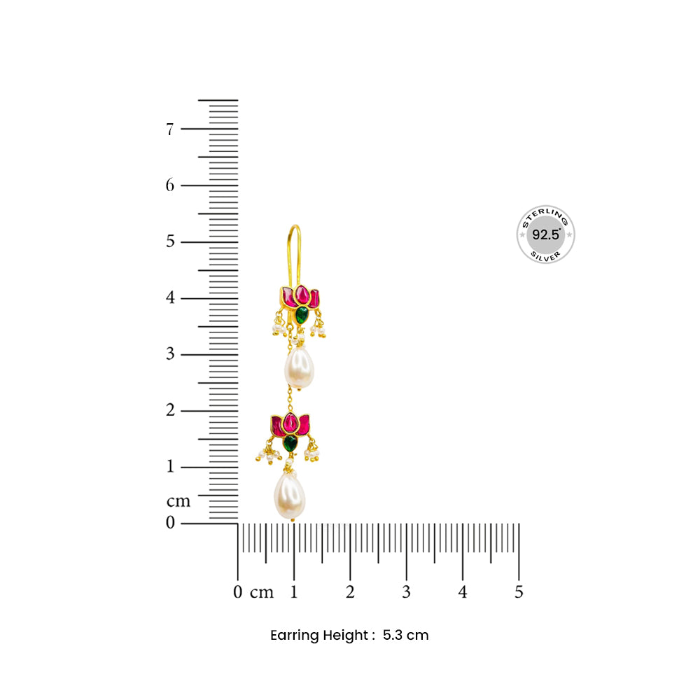 925 Sterling Silver Double Lotus Kundan Sui Dhaga Earring