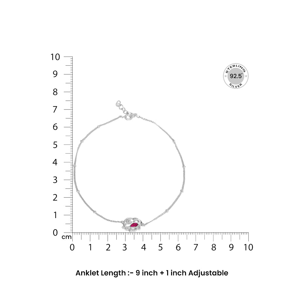 This elegant pair of anklet is a must-have.Perfect for gifting and daily wear, this silver anklet has a beautiful swan motif in the centre with red kundan stone and sparkling white zircons.