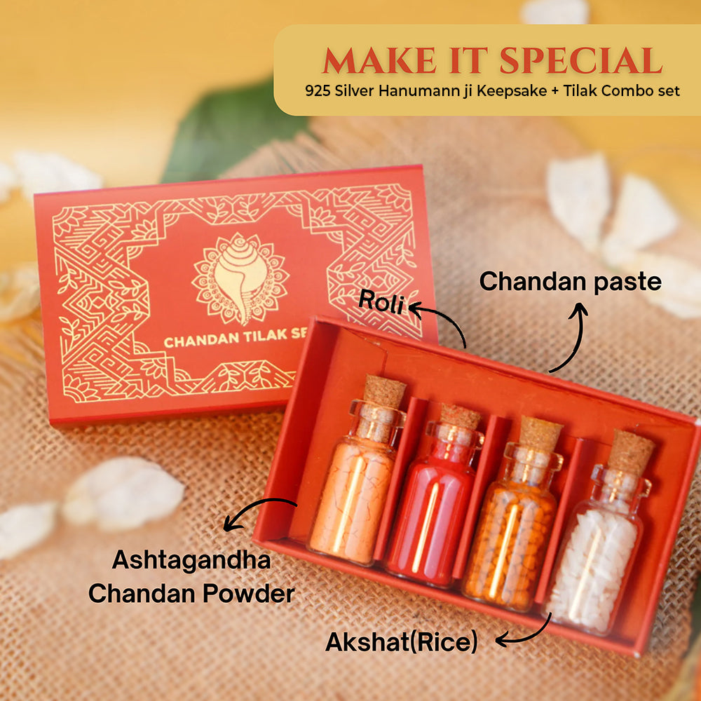 Sacred Pure 925 Silver Hanumann jii Keepsake with Chandan Tilak Set