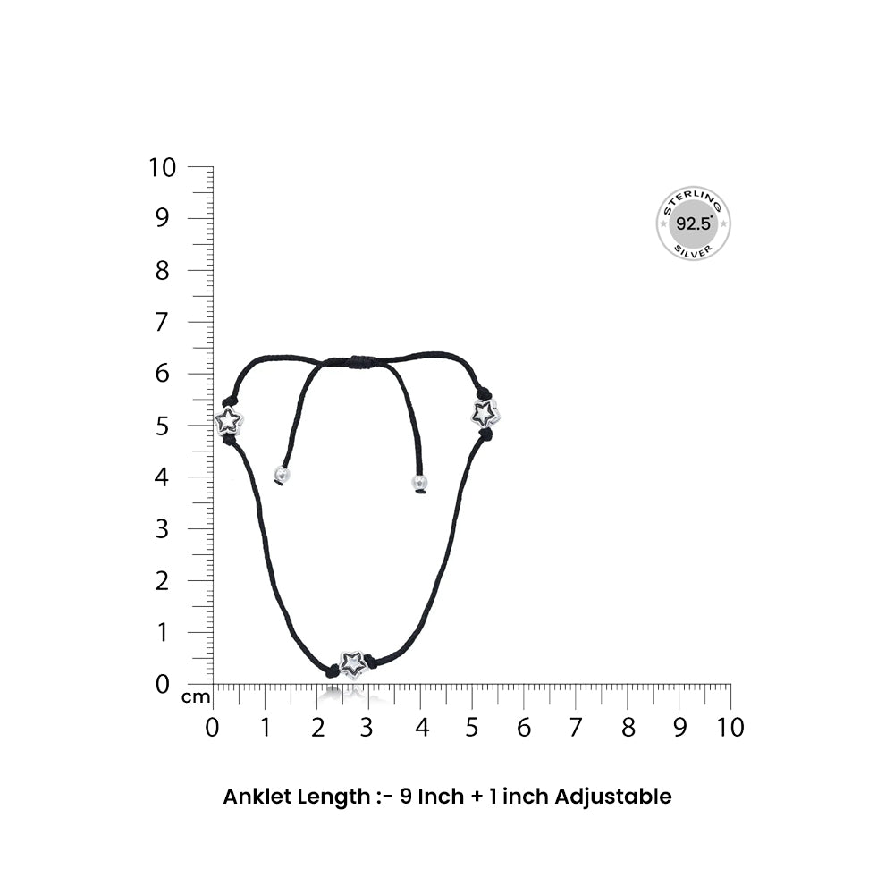 Trendy thread anklet with three stars motifs made in pure 92.5 silver. Perfect for daily wear or as a gift to someone.