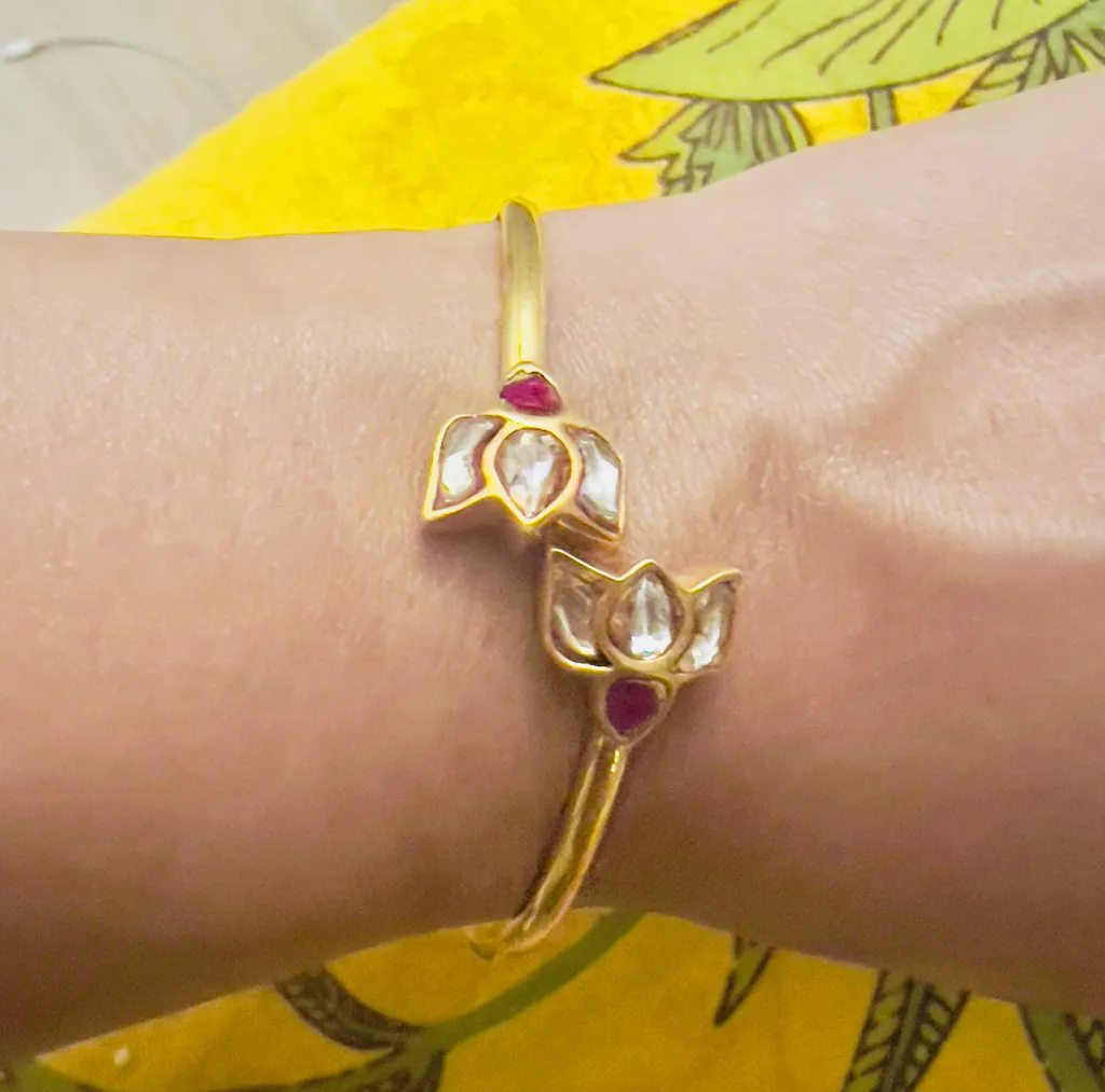 A minimal yet Contemporary design with a hint of our age-old Indian craftsmanship. Just like today's Indian woman. She has the best of both worlds. This beautiful bangle is handcrafted in pure 92.5 silver and gold plated.