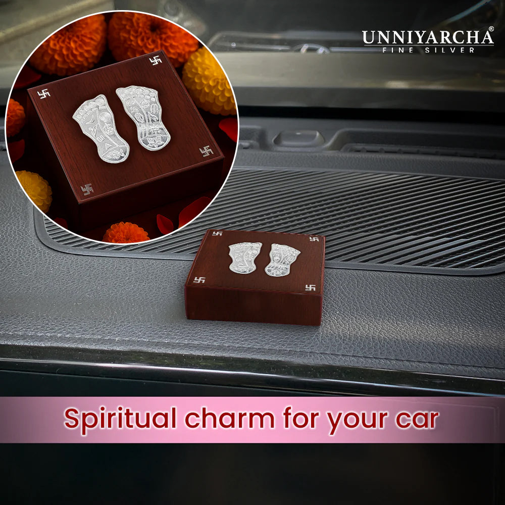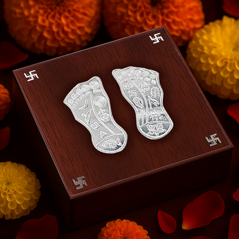 Handcrafted in Pure 925 sterling silver, the Lakshmi Charan represents abundance, grace, and timeless devotion. Designed for the discerning, this piece isn’t just an artifact—it’s an heirloom of blessings, meant to elevate your space.Place it in your puja ghar, workspace, study table, or cash counter—wherever prosperity belongs.