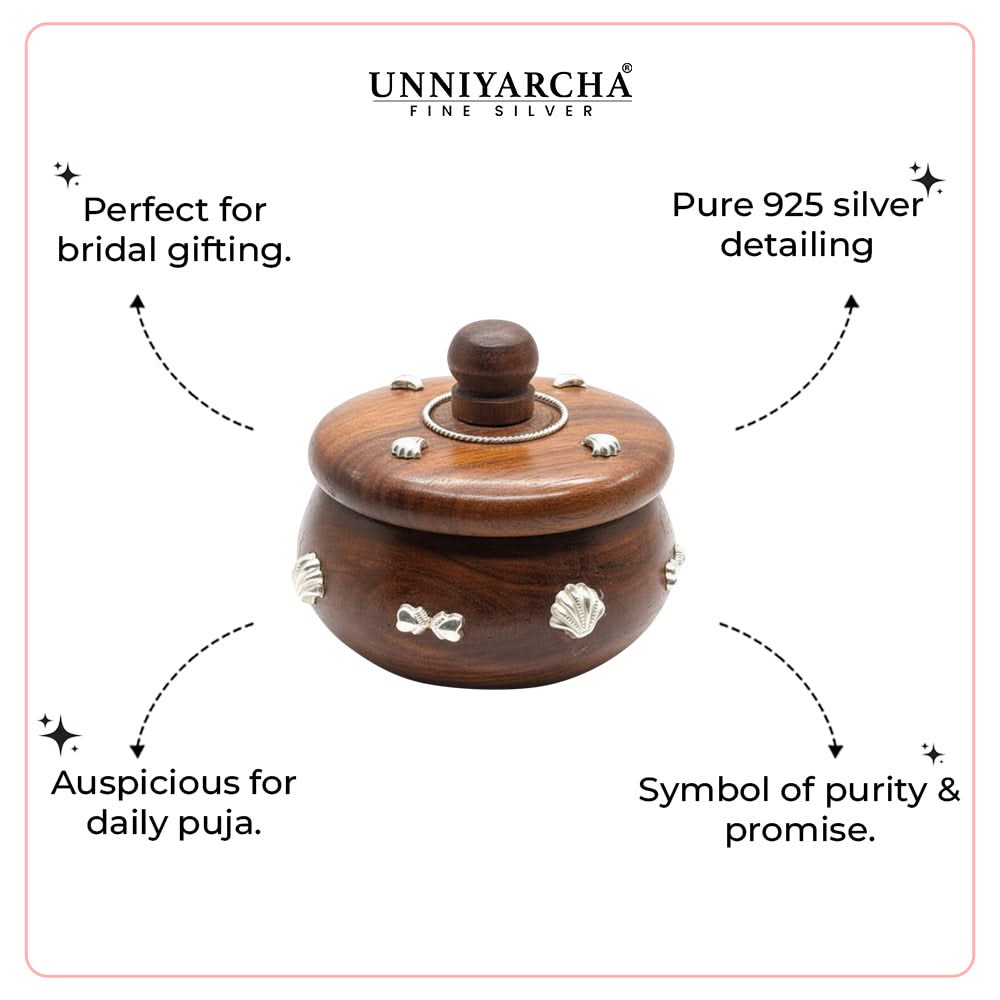 A timeless keepsake of devotion, Samriddhi is crafted in natural wood and adorned with pure 925 silver detailing. Each motif is inspired by sacred temple art, reflecting purity, prosperity, and heritage.