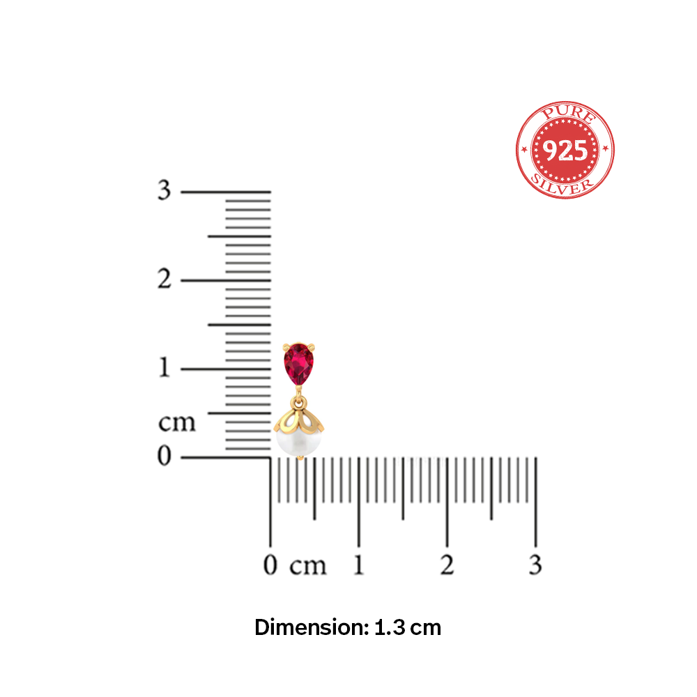 Unniyarcha 925 Pure Silver Red Drop Pearl Stud Earrings