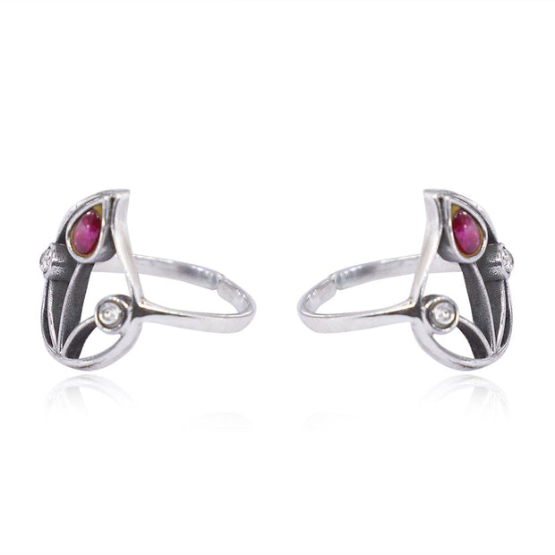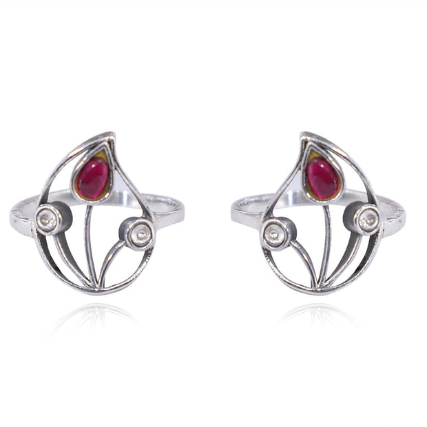 Silver 92.5 Aam Ras Red Stone Toe Ring