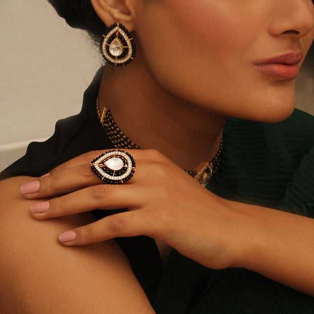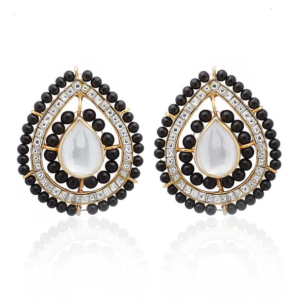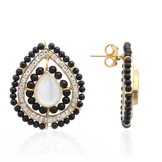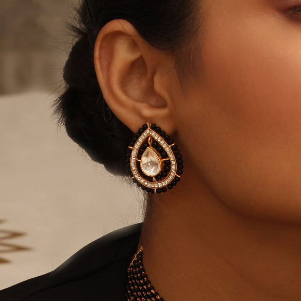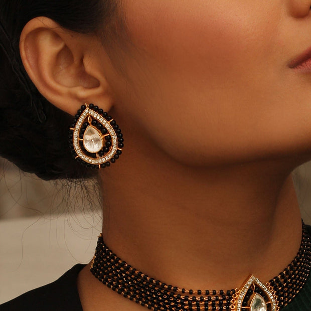 This silver mangalsutra earring is a perfect look by pairing your ethnic wear with these black beaded surrounded with Stone and, Crafted in 92.5 pure silver.