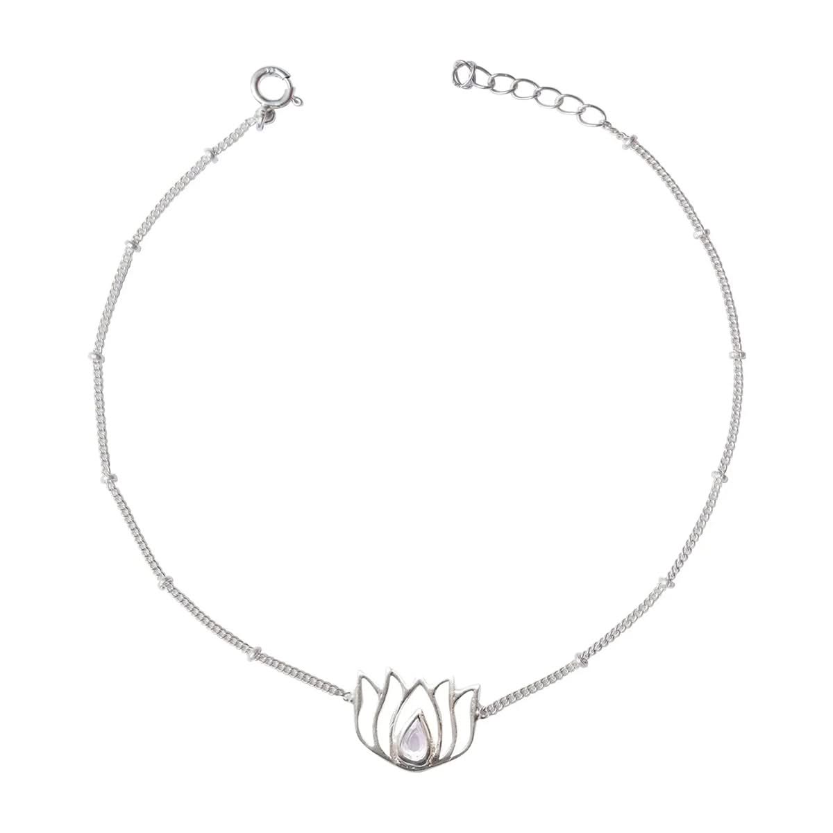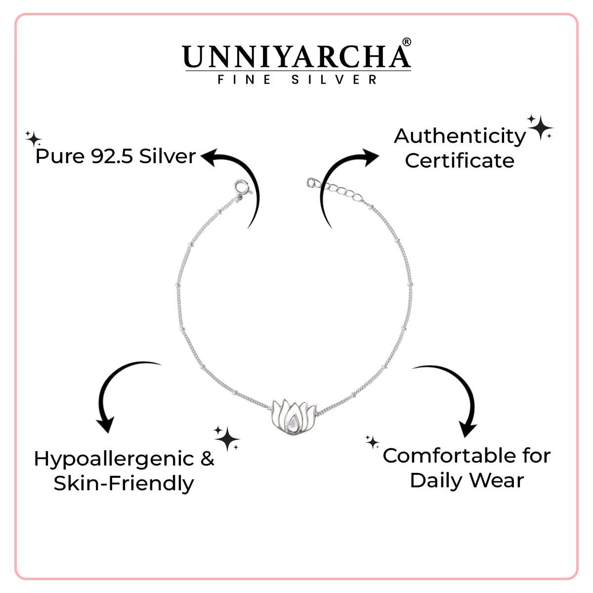 A Lotus motif enhances the beauty of a simple anklet and gives a classy look to go with any outfit. All our designs are hand-crafted by our skilled craftsmen in pure 92.5 silver.