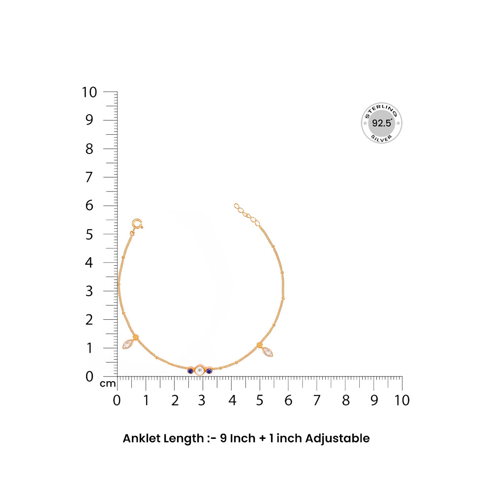 Silver 92.5 Anklet with Blue and white zircon