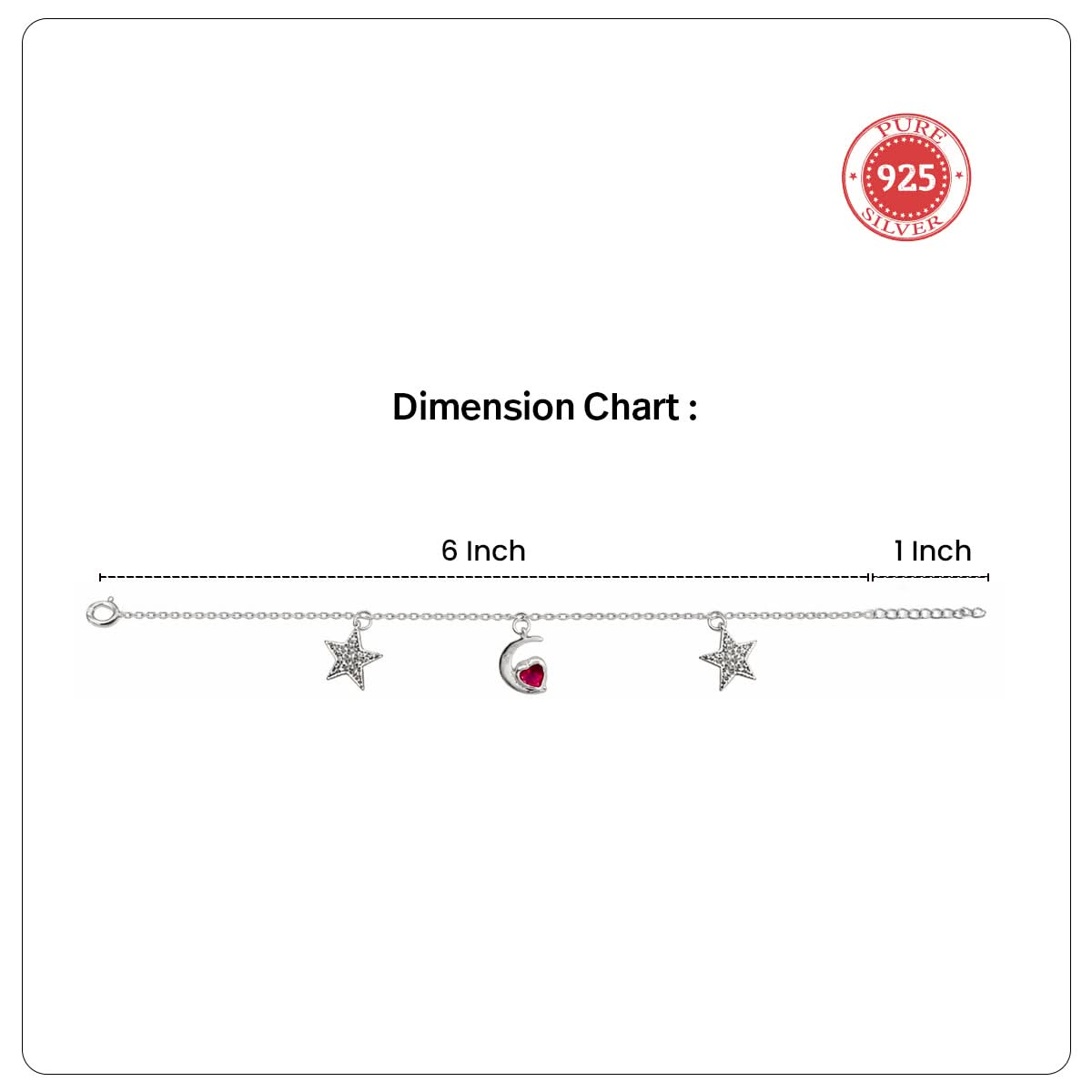 Crafted in 925 sterling silver, this elegant bracelet features a delicate chain adorned with charming star motifs and a graceful heart-shaped accent at the centre. The subtle detailing and balanced design lend it a dreamy, celestial appeal while maintaining a minimal, everyday elegance.