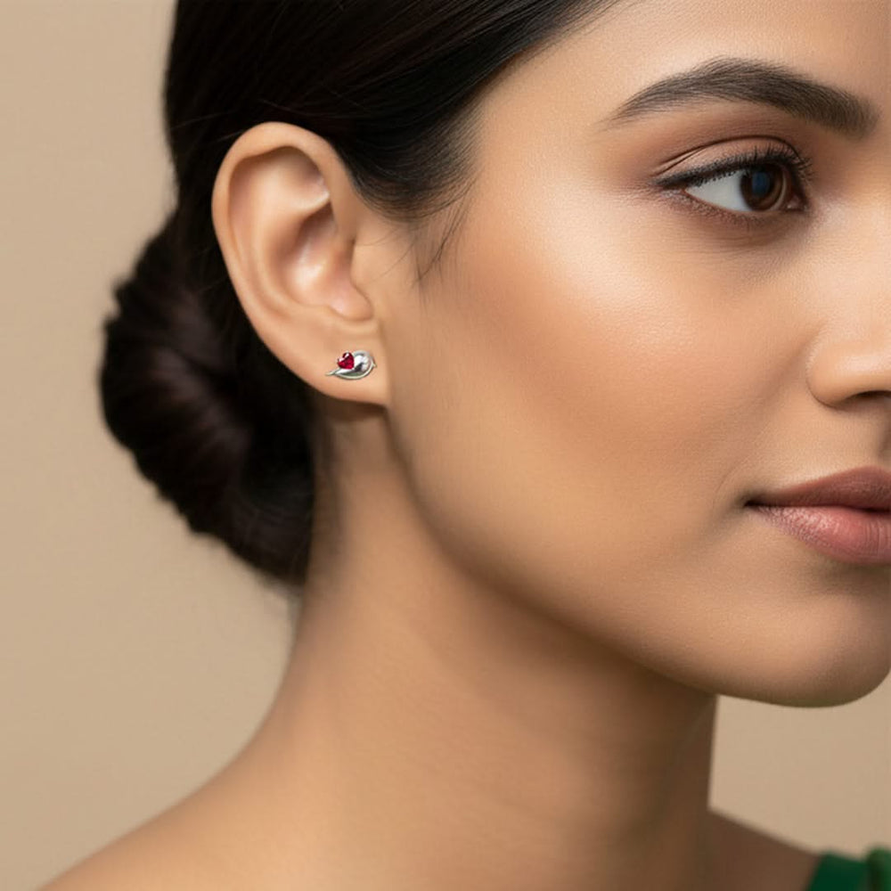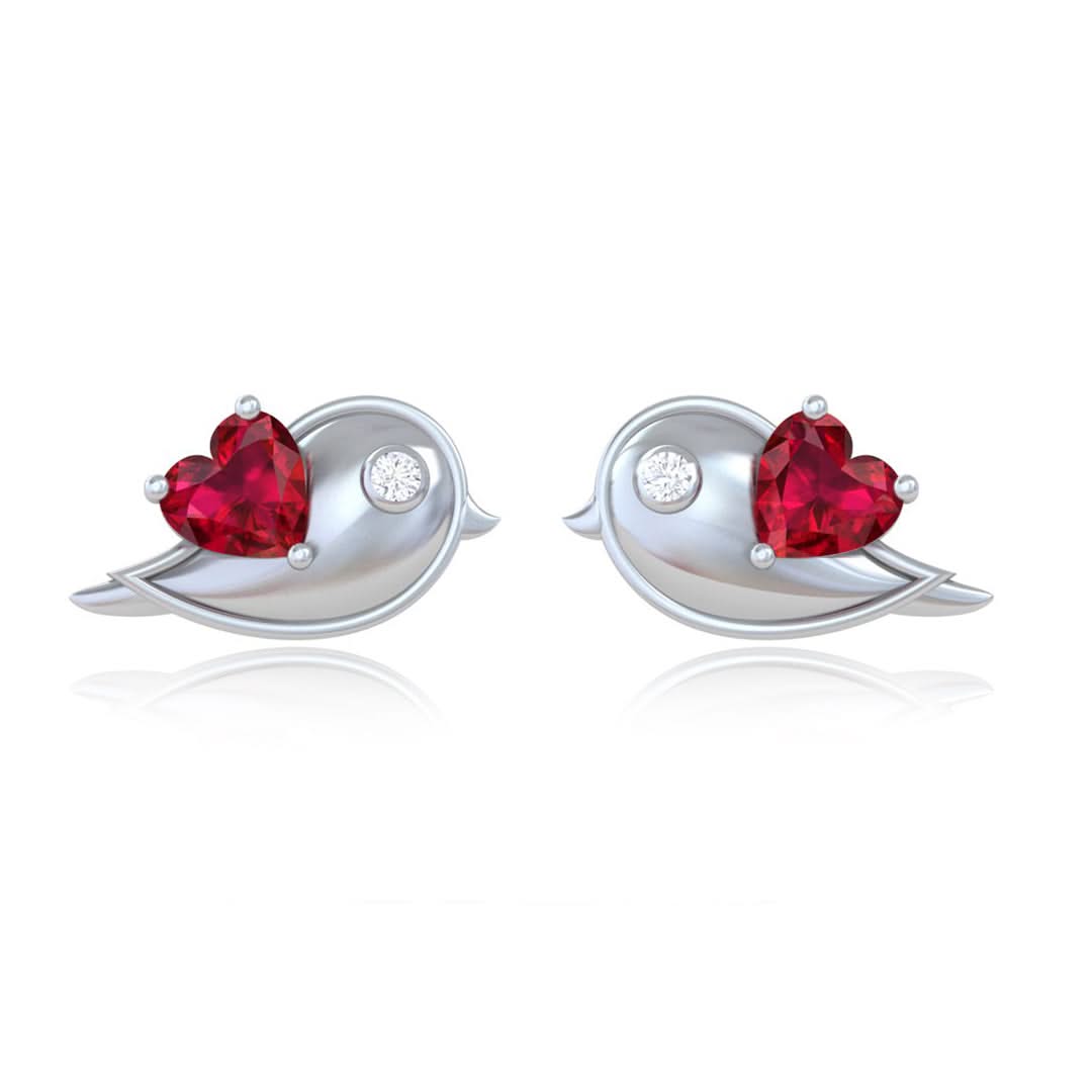 A pair of minimalist stud earrings crafted in plain 925 sterling silver, featuring two delicate lovebirds in a mirrored design. Each lovebird is softly sculpted with smooth curves and fine detail, symbolizing eternal companionship.