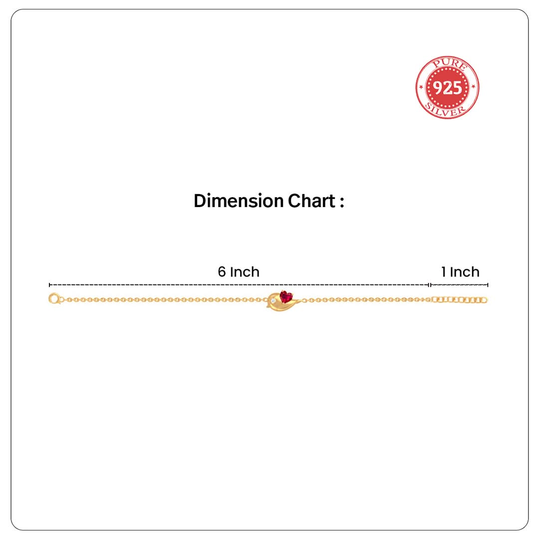 This elegant bracelet features a delicate lovebird inspired motif in plain polished gold, cradling a deep red heart shaped stone symbolizing affection and enduring bonds. The sleek silhouette and subtle detailing give it a refined, poetic charm, making it a graceful expression of love and companionship.