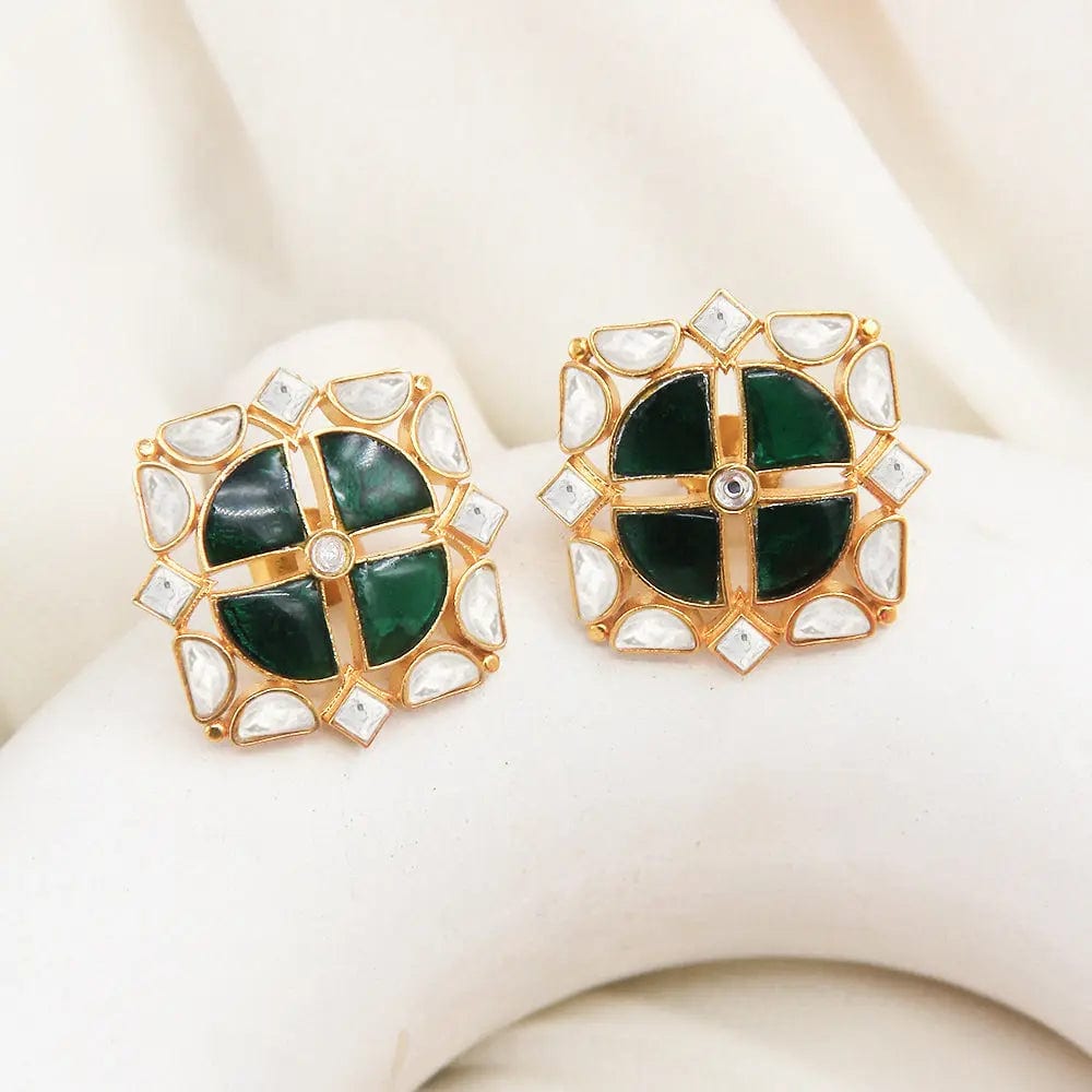 silver 925 green kundan earring