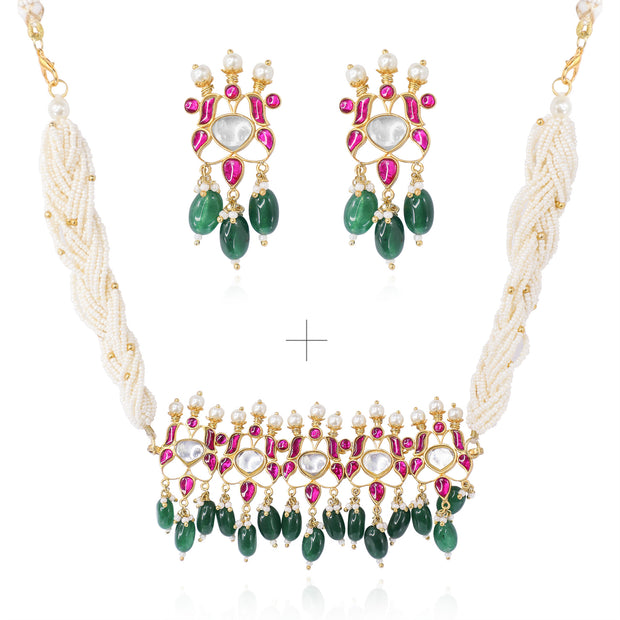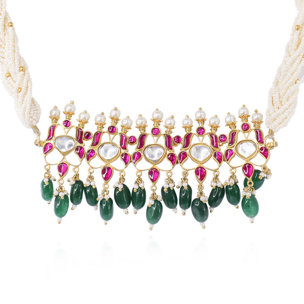 Silver 92.5 Elegant Kundan Choker With Pearl strings