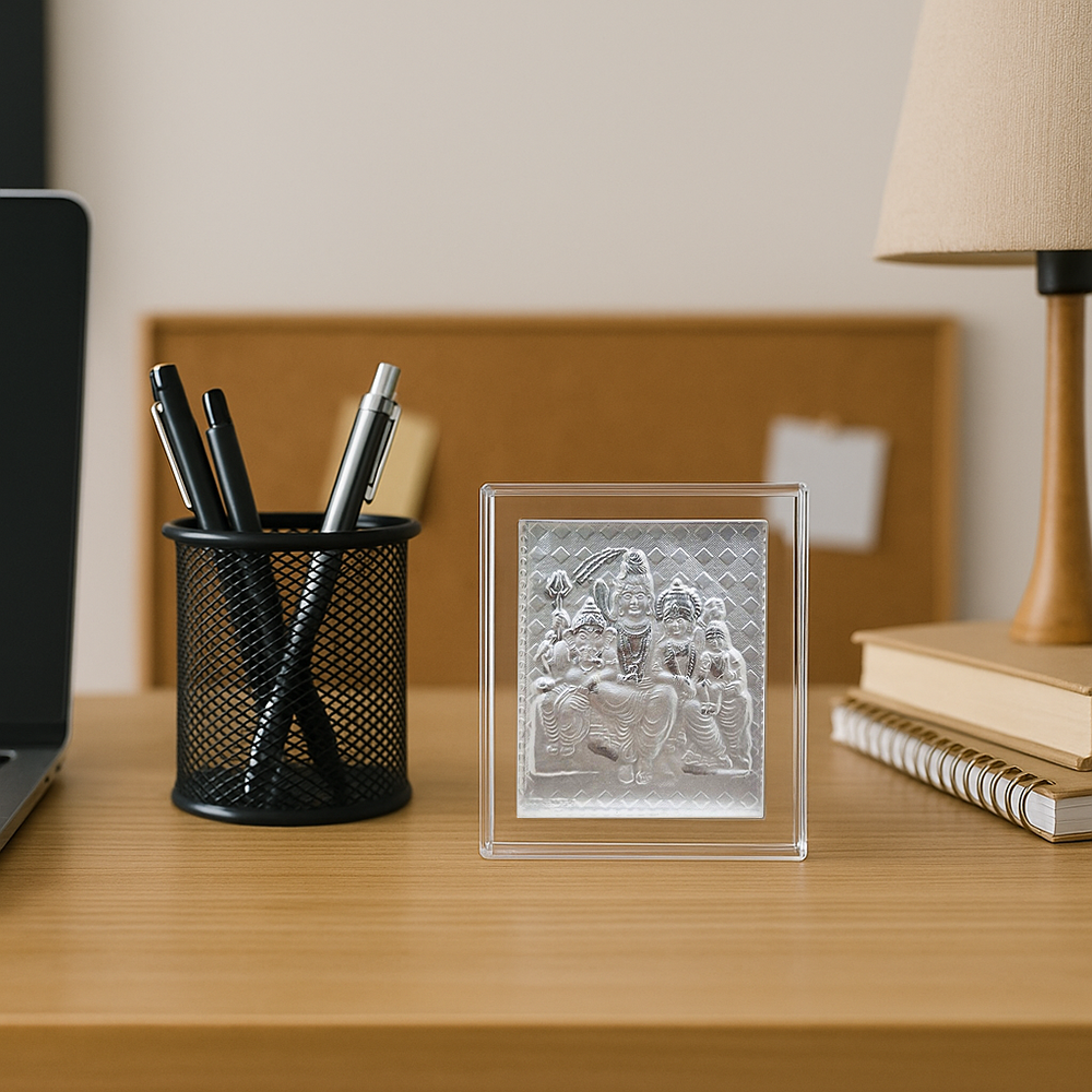 Bring home divine blessings with this 999 Pure Silver sacred frame, beautifully crafted with an embossed idol design in a premium clear acrylic display.