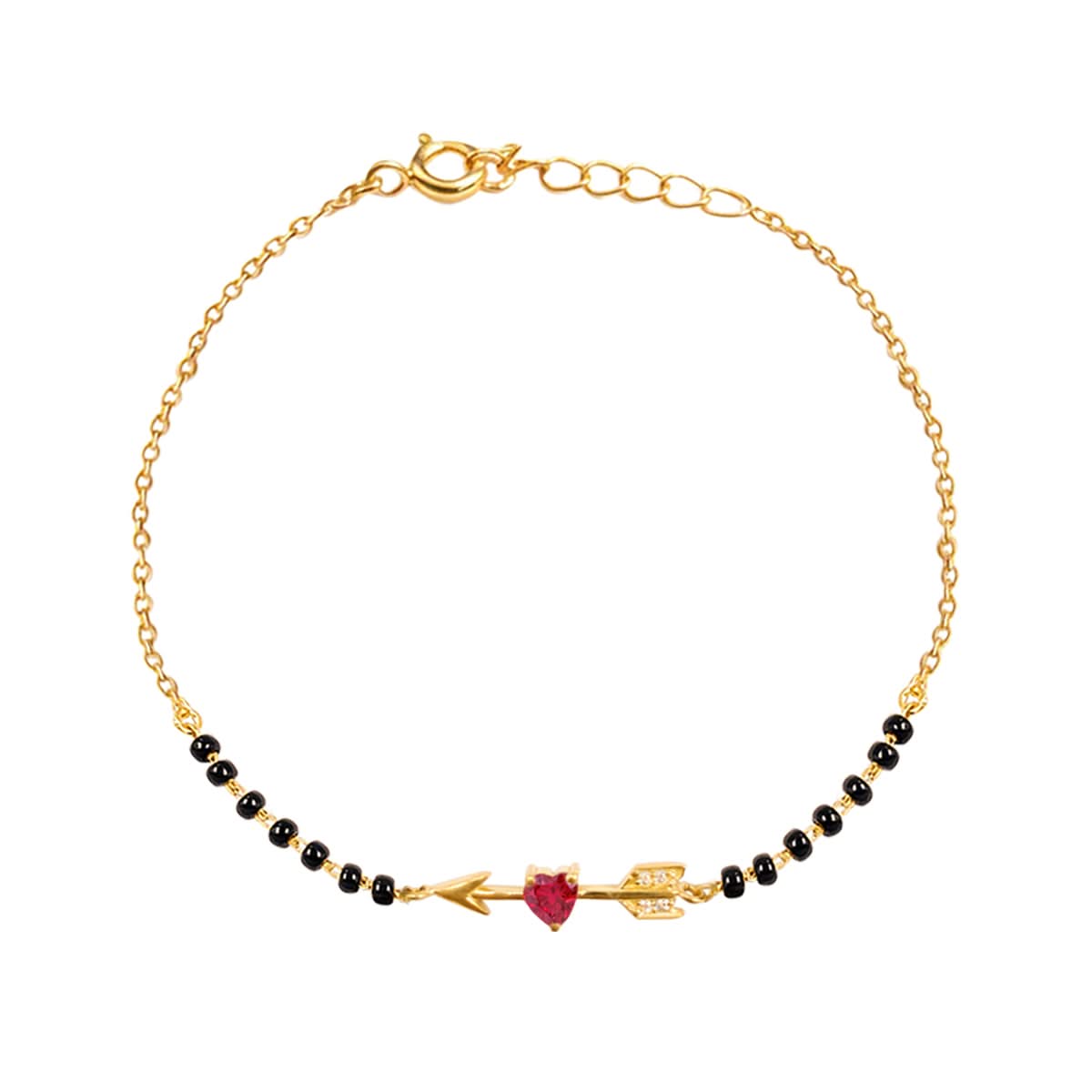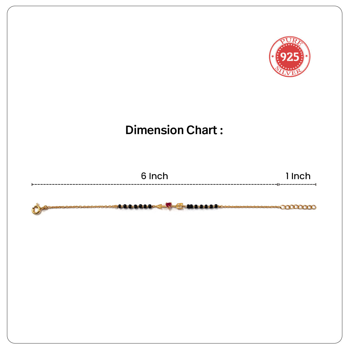 A graceful expression of love and commitment, this mangalsutra bracelet blends timeless symbolism with contemporary elegance. Designed with delicate black beads, a striking ruby-toned heart centerpiece, and sleek gold accents, it adds a refined sparkle to everyday moments.