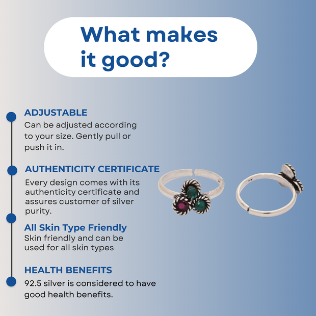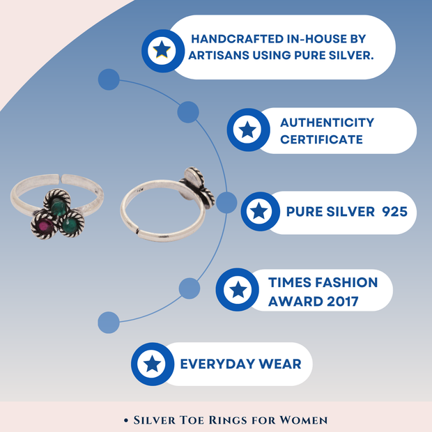 Made in Pure 92.5 Silver, ensuring durability and long-lasting shine. You will love the color combinations of this toe ring.