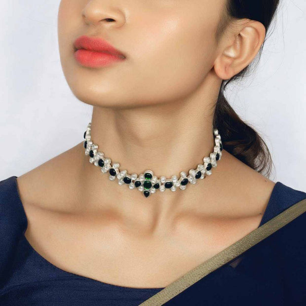 This beautiful silver choker is gorgeous and can be styled for both small and big occasions. Wear it with a white or black blouse, it goes perfectly well with a contemporary outfit as well.