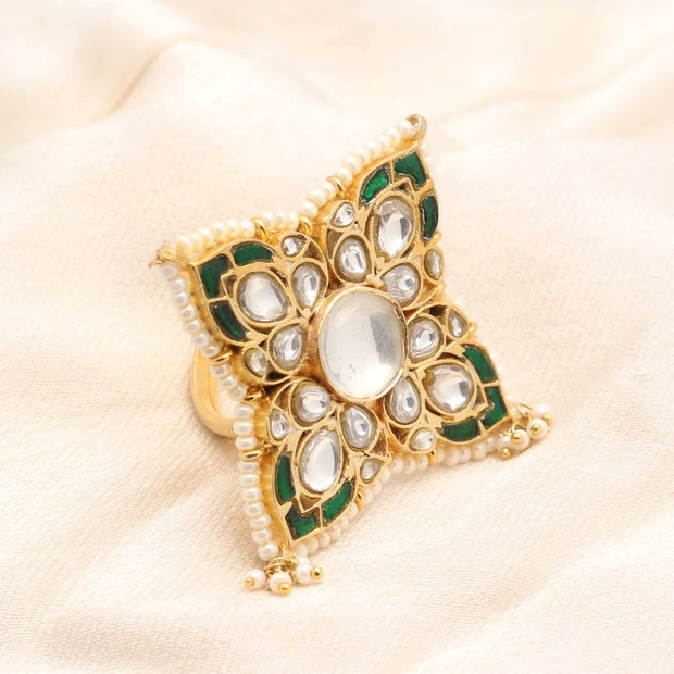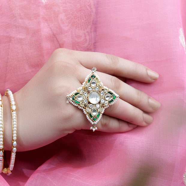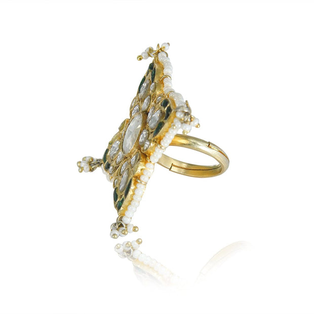Silver Kundan Green Ring Rings - By Unniyarcha - Original Manufacturers of Silver Jewelry, Gold Plated Jewellery, Fashion Jewellery and Personalized Soul Bands and Personalized Jewelry