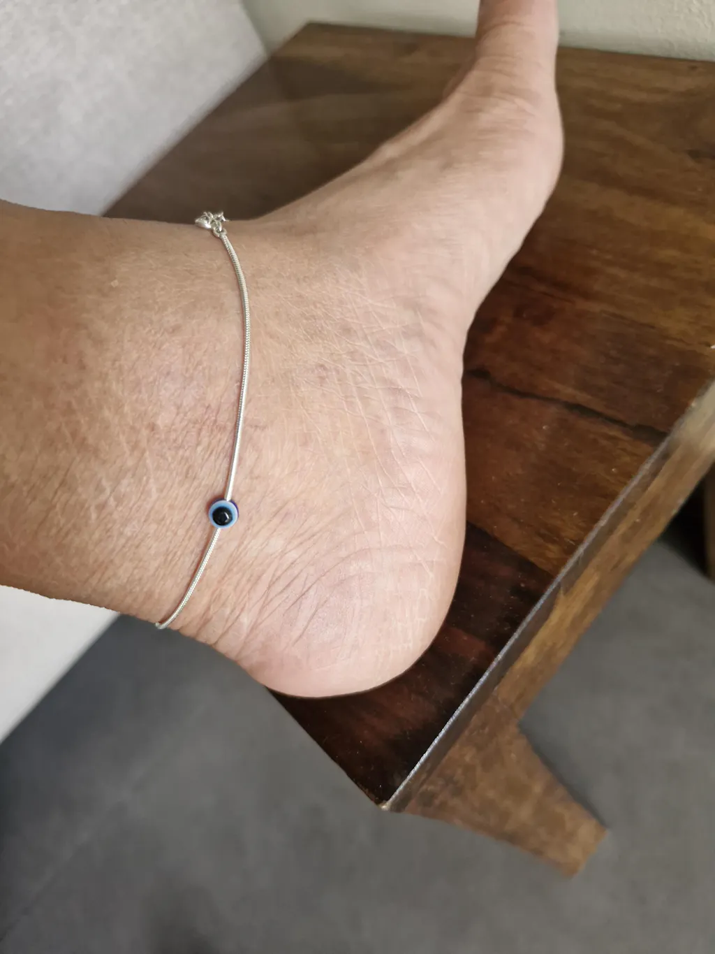 The Silver Single Evil Eye Anklet is a chic and meaningful accessory that combines traditional symbolism with contemporary design. Crafted from high-quality sterling silver, this anklet features a single evil eye charm, often adorned with blue enamel or gemstones, to offer protection and ward off negative energy.