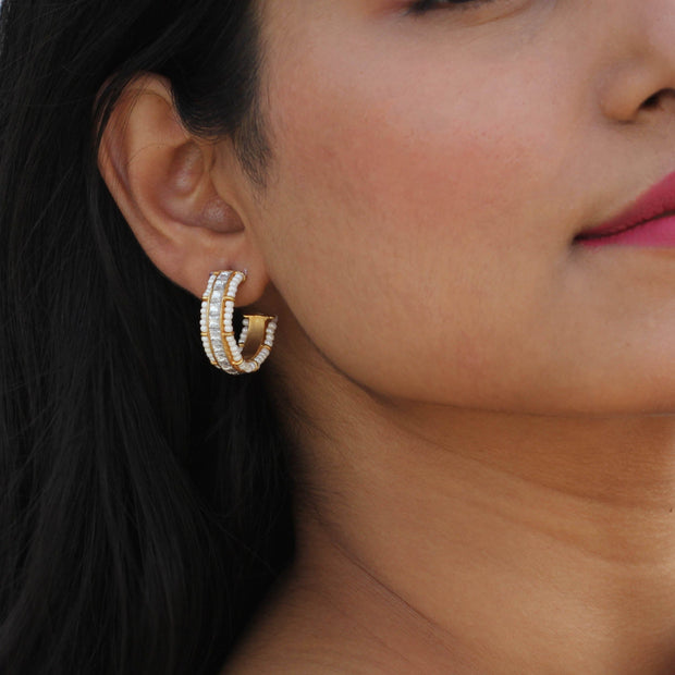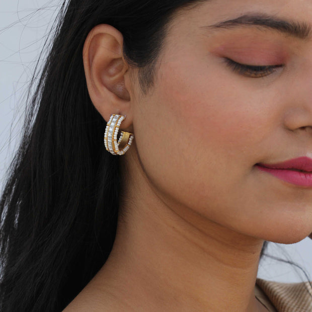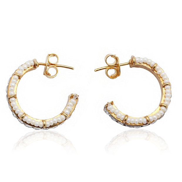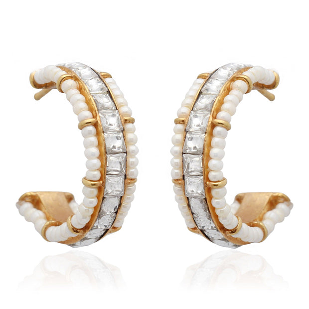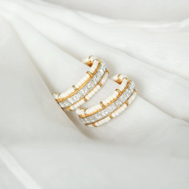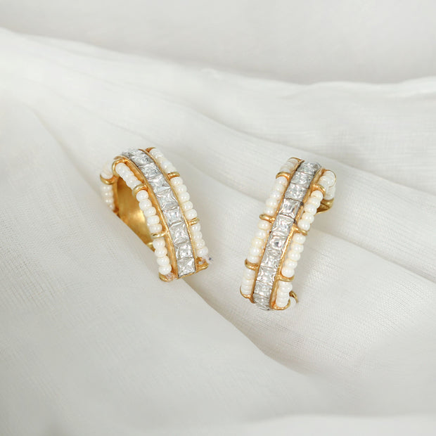 - We are absolutely in love with this beautiful hoop design. The pearls and kundan make for the most glorious combination. Made in pure 92.5 silver and gold plated.